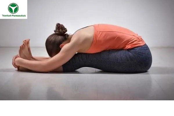 - Ngồi thẳng lưng, hai chân duỗi thẳng về phía trước, hai lòng bàn chân chụm lại với nhau.