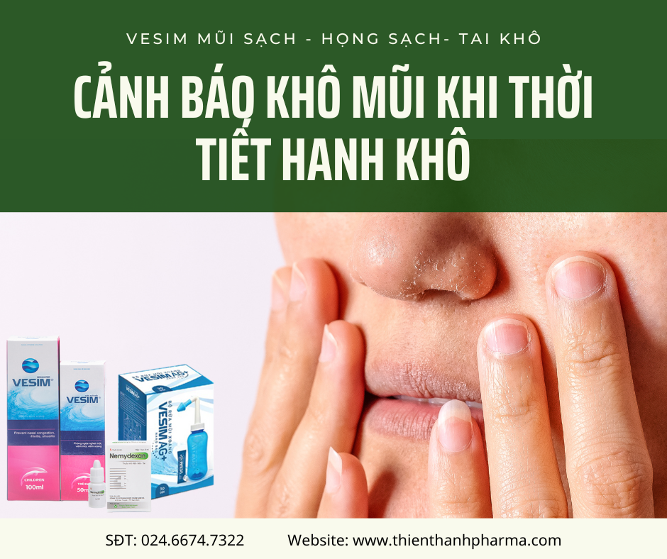 - Xịt mũi, rửa mũi bằng nước muỗi biển: Đây là biện pháp được các bác sĩ tai mũi họng đánh giá cao. Việc xịt rửa mũi bằng dung dịch vệ sinh mũi dạng vòi xịt phun sương là cách giảm khô mũi an toàn và hiệu quả. Xịt, rửa mũi sẽ giúp cho đường thở thông thoáng hơn, đảm bảo giữ độ ẩm cho hốc mũi, hỗ trợ giảm khô mũi khi thời tiết hanh khô. Lưu ý khi xịt mũi, rửa mũi là nên chọn dung dịch vệ sinh xịt mũi dạng phun sương có chứa nước muối biển, các nguyên tố vi lượng có nồng độ tối ưu cho sức khỏe niêm mạc, điển hình như Bộ rửa mũi xoang Vesim, nước muối biển Vesim...