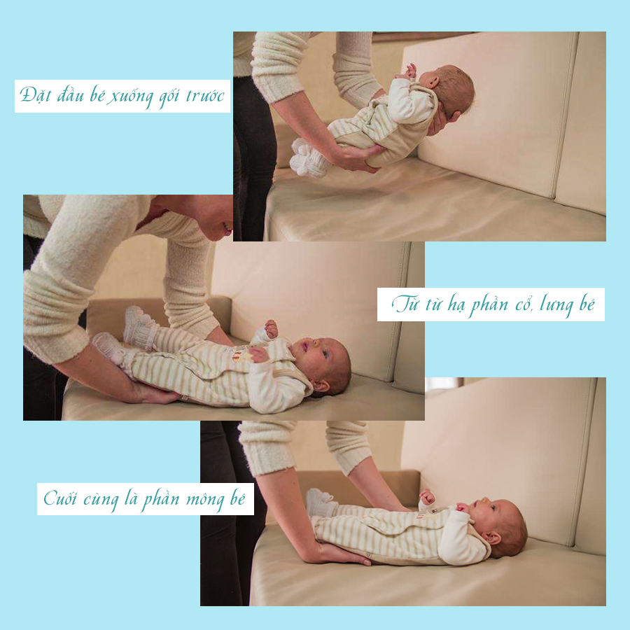 Một chút thay đổi tron quy trình đặt bé xuống giường này, chỉ trong một lần đặt bé, trẻ vẫn ngủ ngon giấc mà không bị tỉnh lại như thói quen đặt mông bé xuống trước.